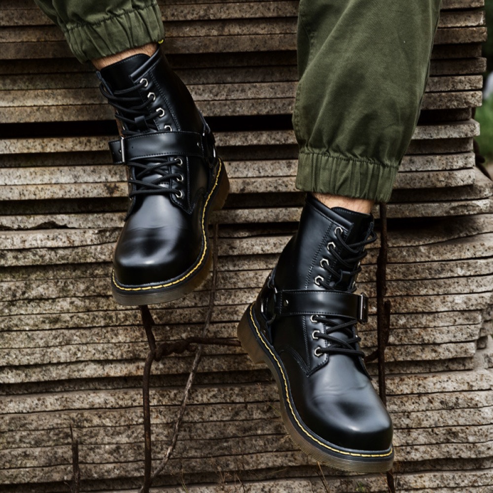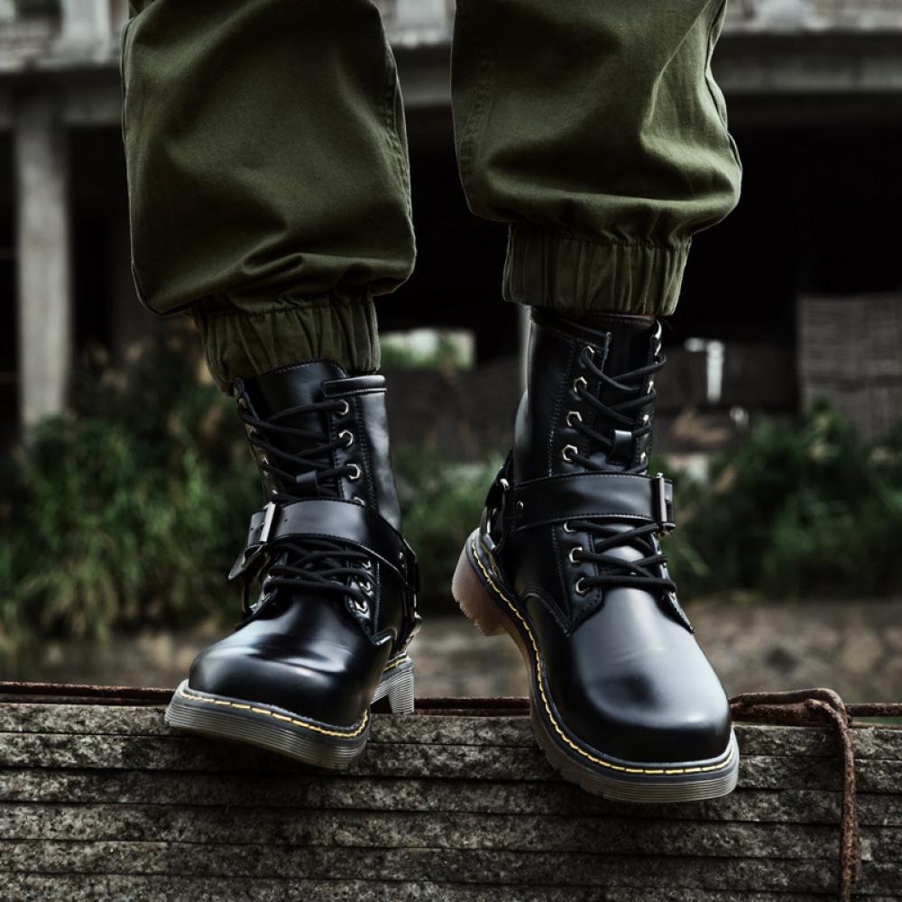 Autumn Men's Mid-Tube Boots Trend British ToolingMiddle-Top Martin Boots