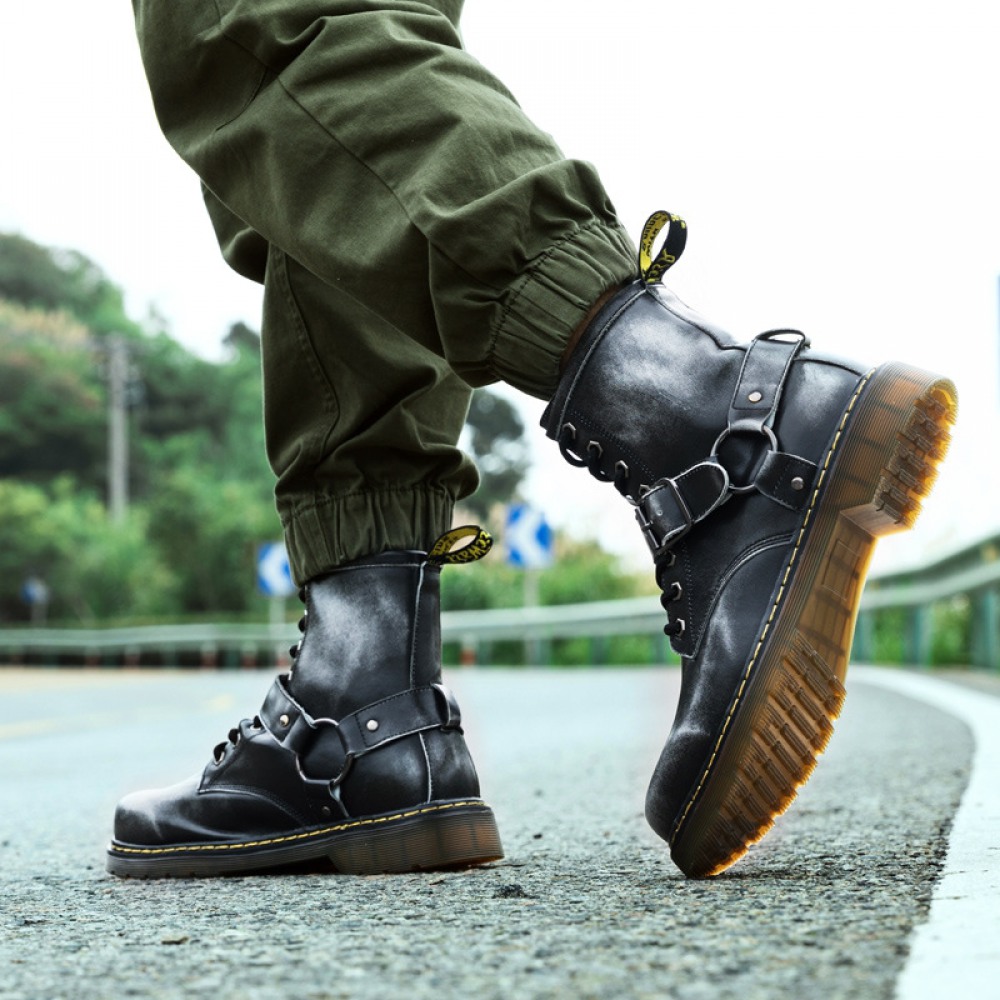 Big Head Leather Shoes Men's Trendy Snow Military Martin Boots