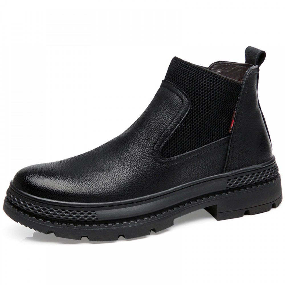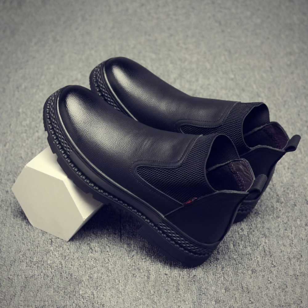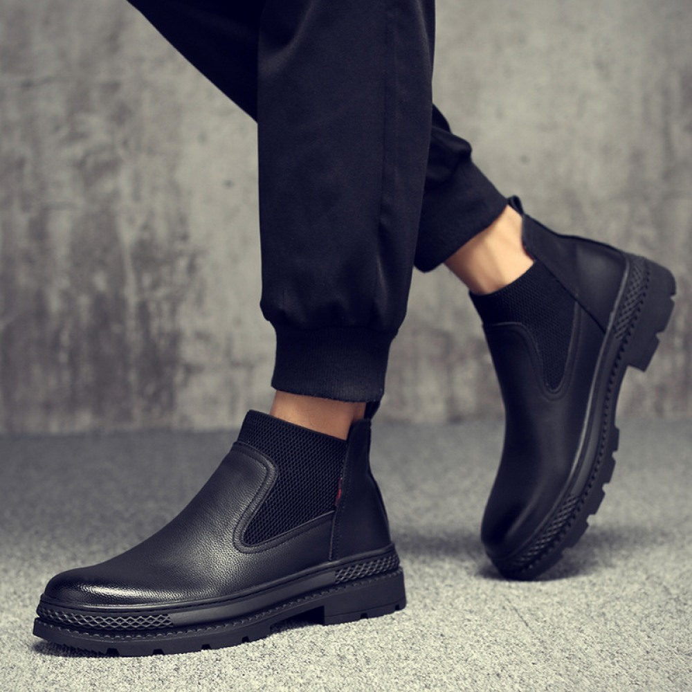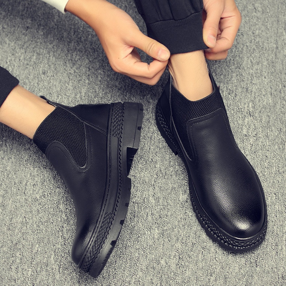 Men's Round Toe British Leather Boots Side Zipper Martin Boots Wear-Resistant Low-Heel Shoes
