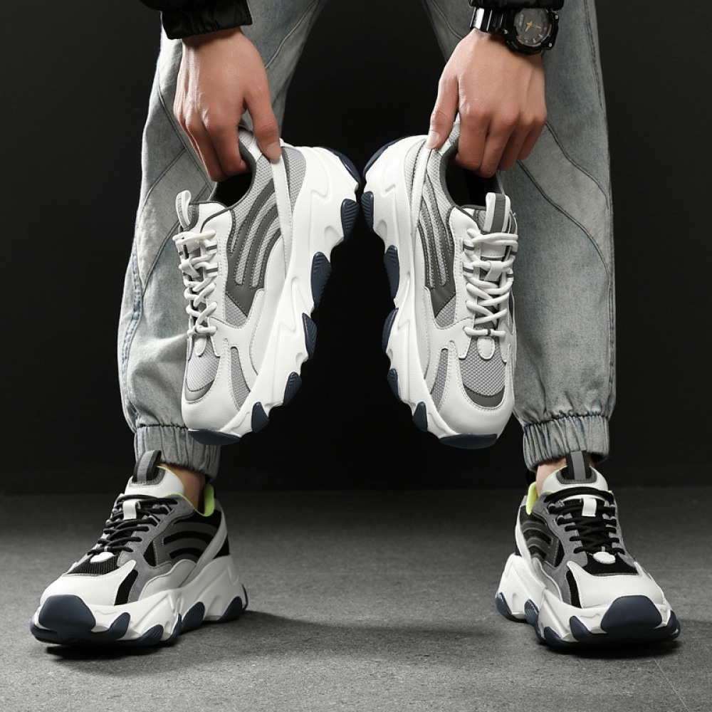 Men's Fashion Thick-Soled Lace-Up Round Toe Casual Sports Shoes