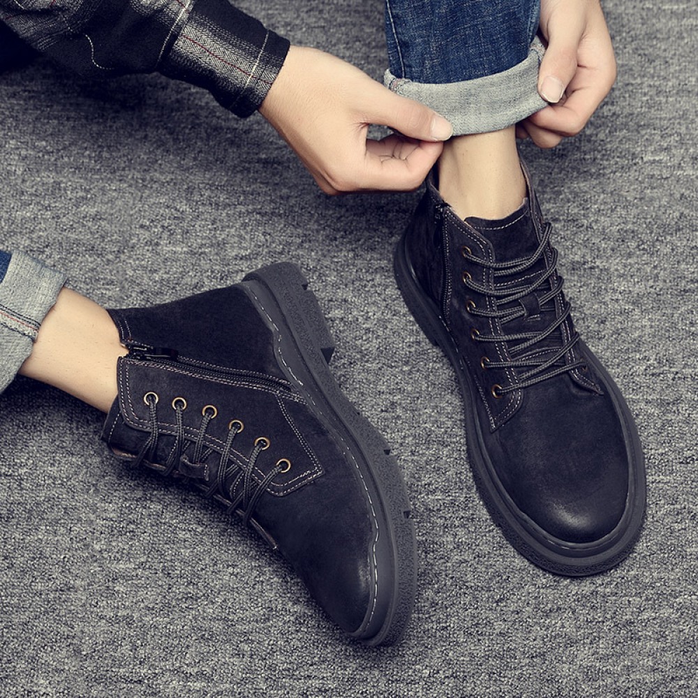Autumn Men's Mid-Tube Boots Trend British ToolingMiddle-Top Martin Boots