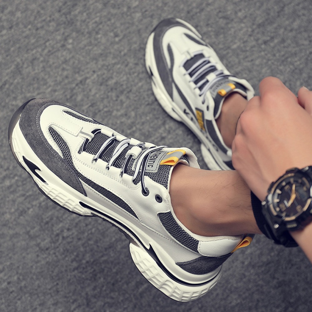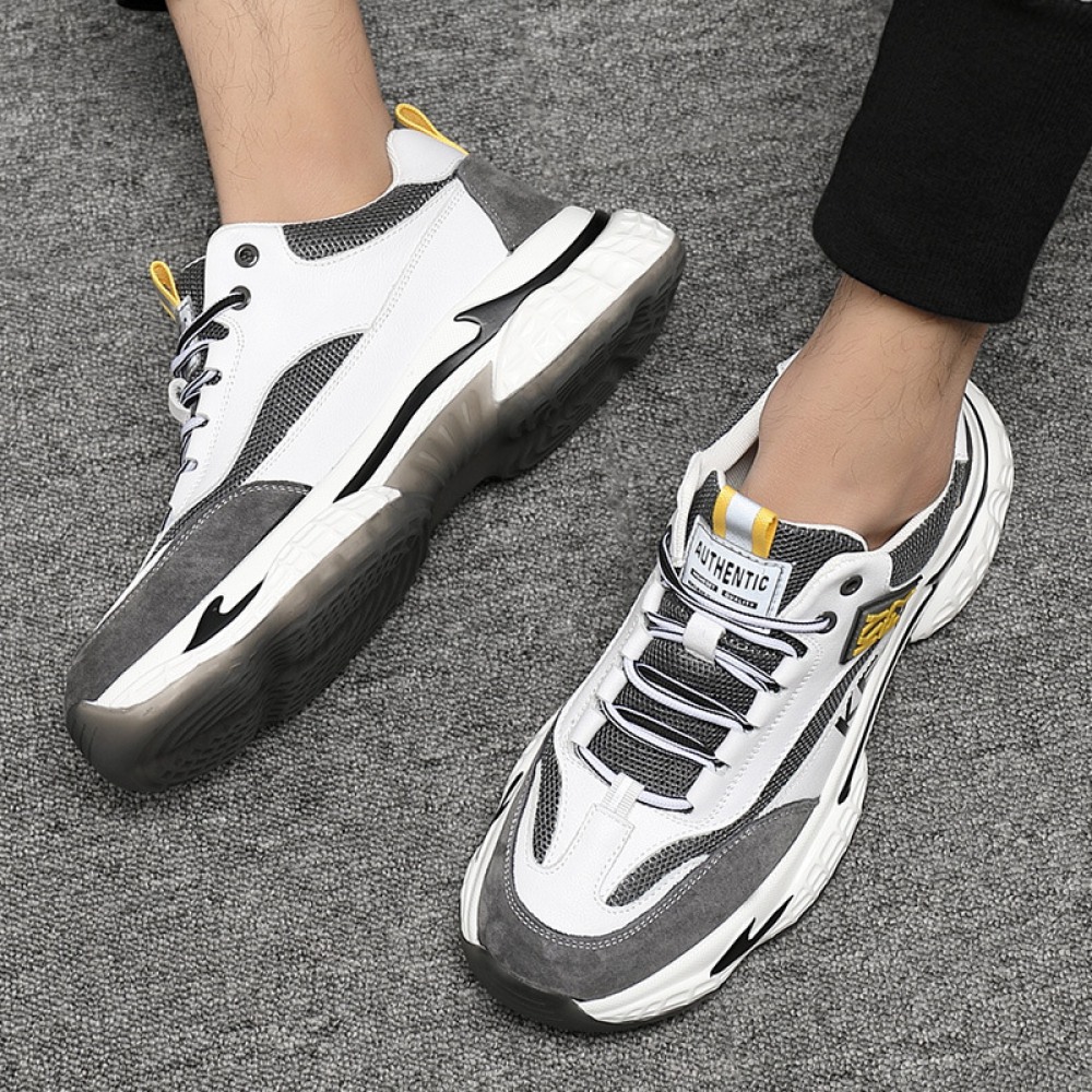 Men's Leather Fashion Casual Trendy Shoes Autumn Thick Soles Increased Breathable Mesh Sports Shoes