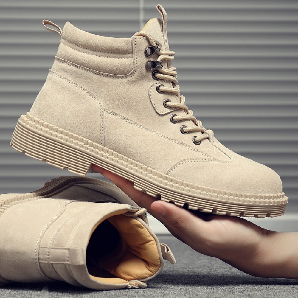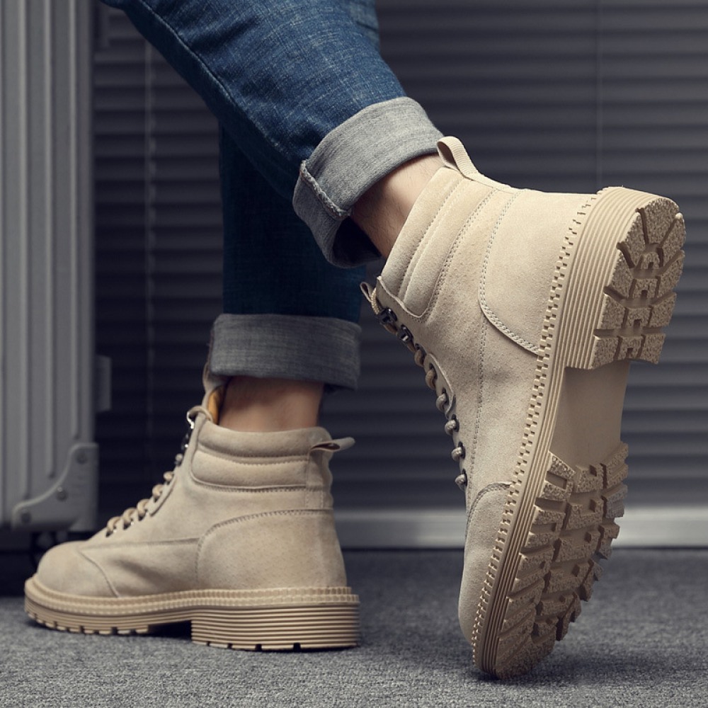 New Men's British Style Leather Tooling Martin Boots High-Top Trend Desert Military Boots
