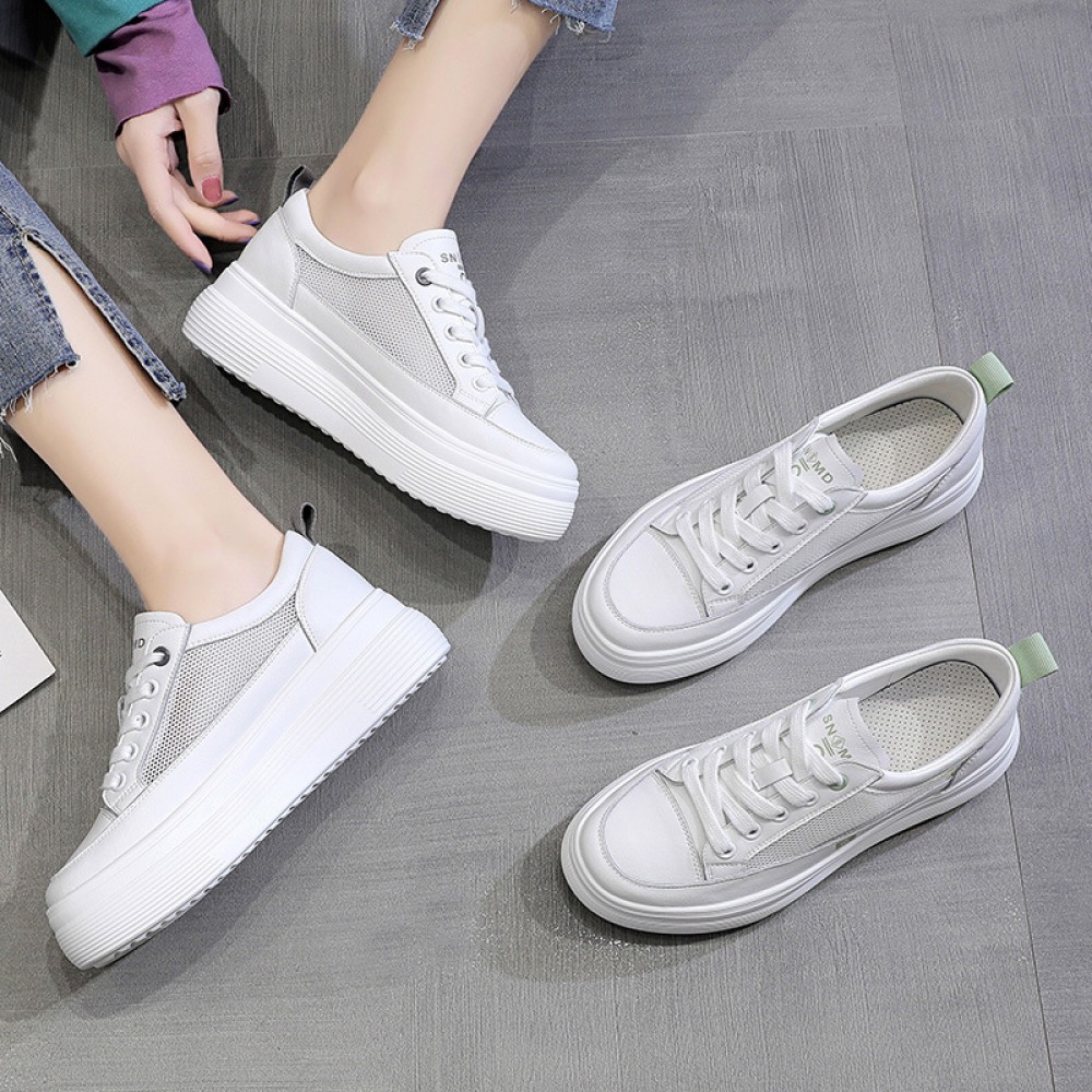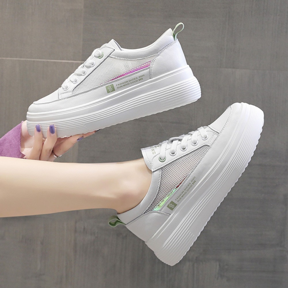 Spring and Summer New Women's Fashion White Flat Thick Bottom Breathable Casual Shoes