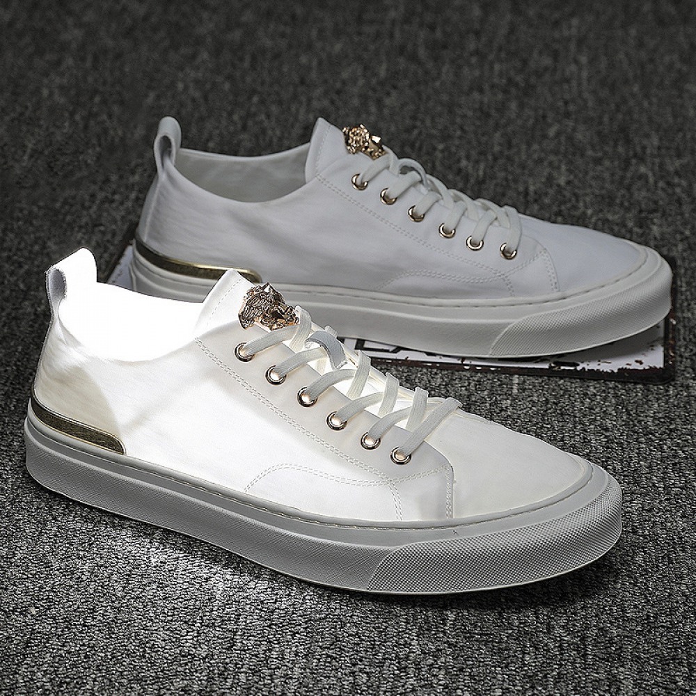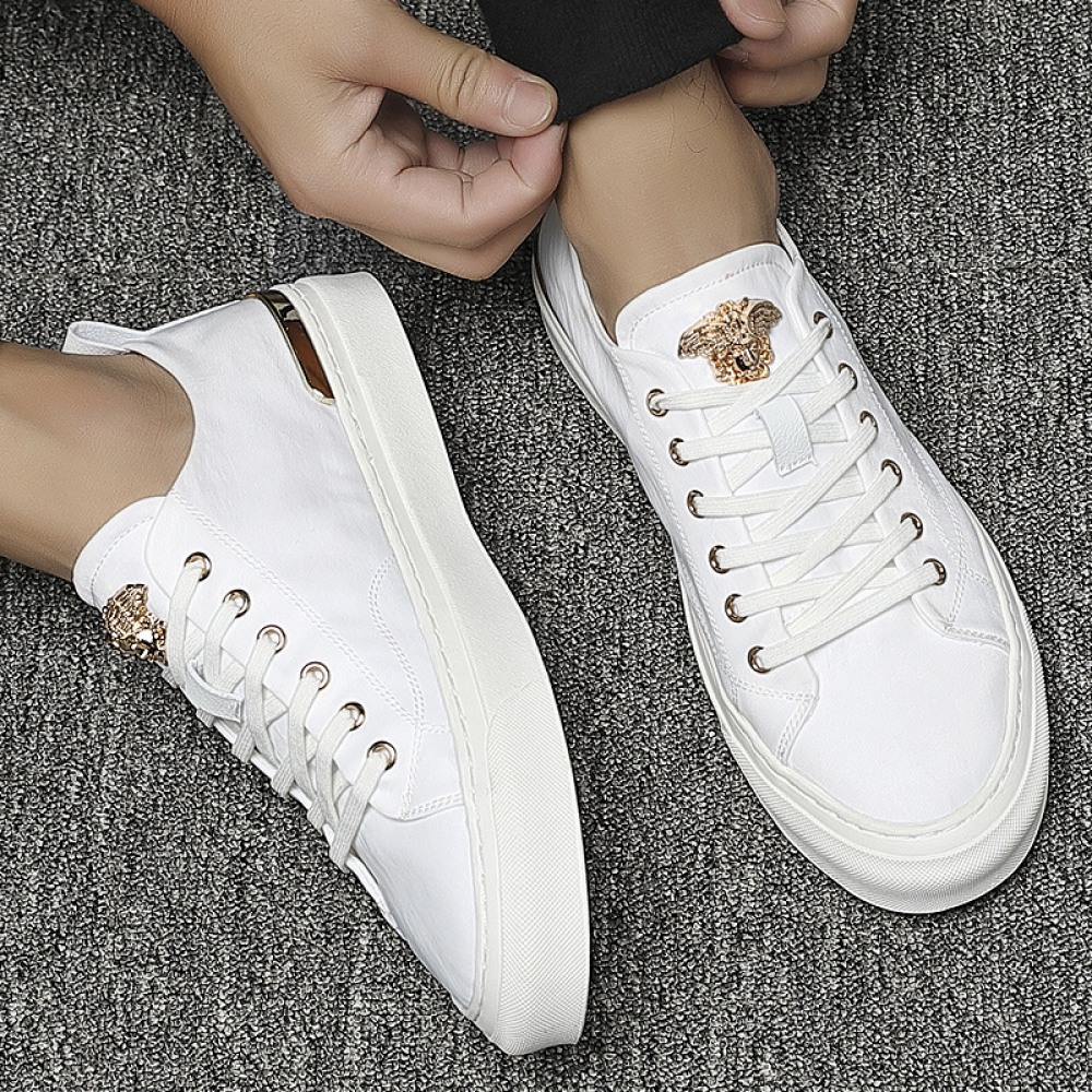 Men's Leather Board Shoes Trendy White Casual Shoes