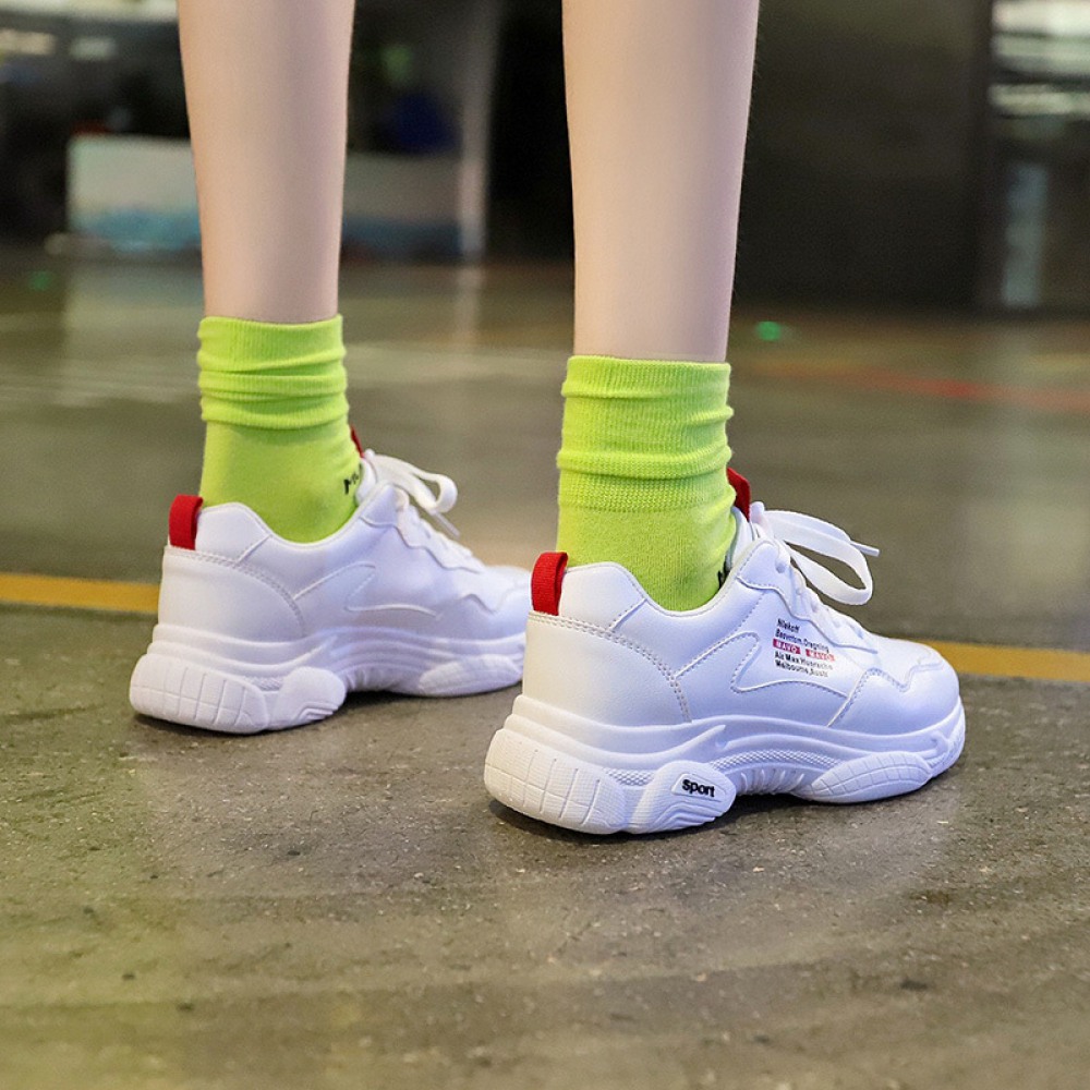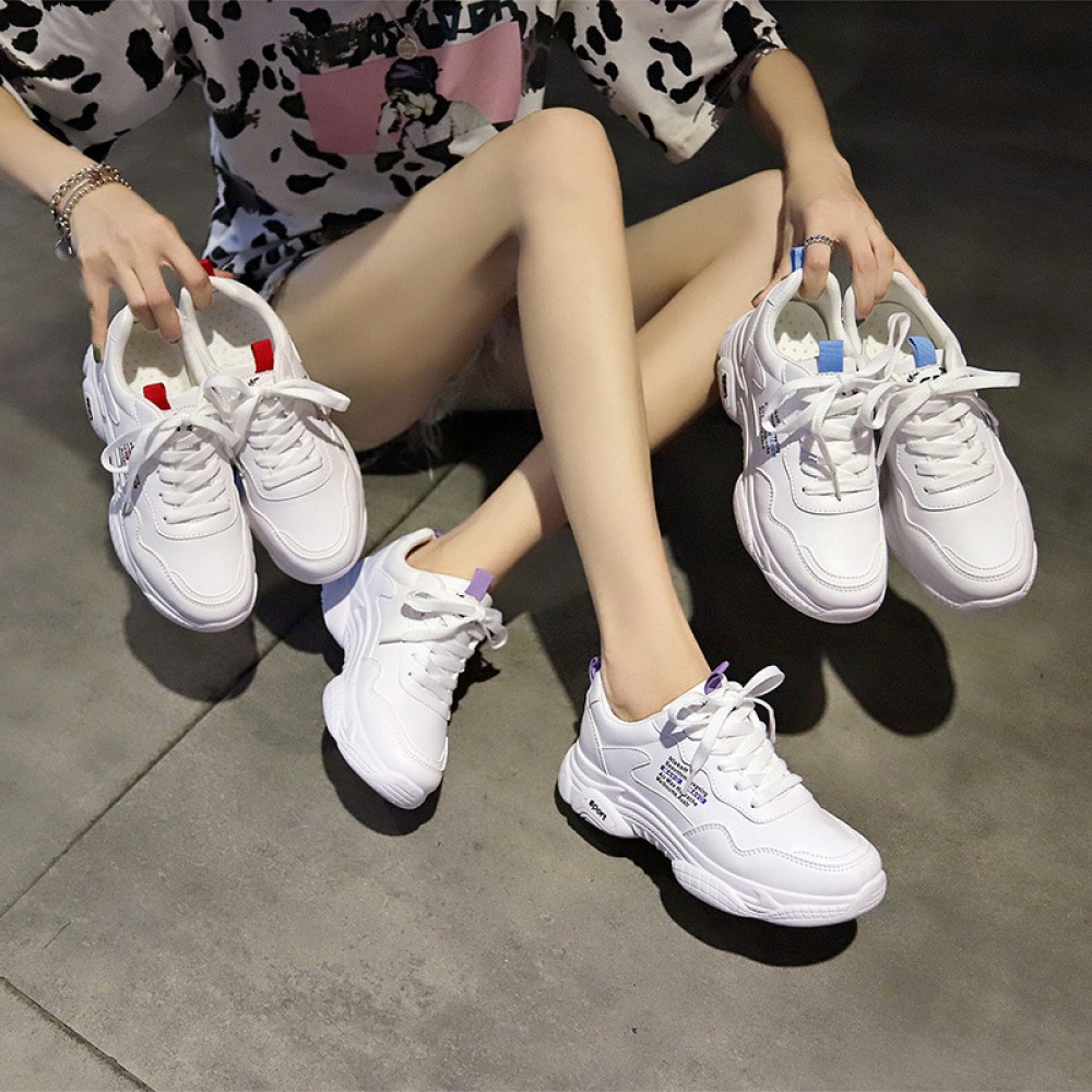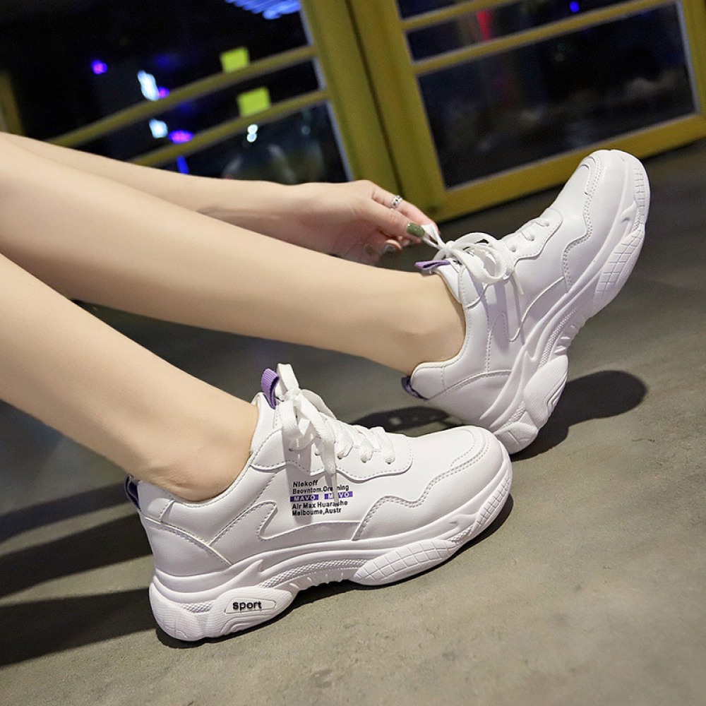 Spring New White Women's Breathable Running Board Shoes Heightened Casual Shoes