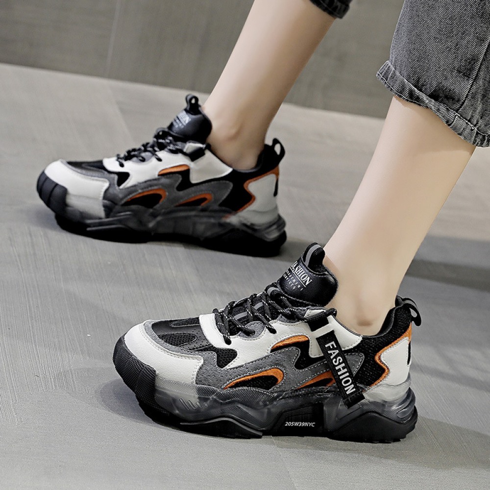 Women's Autumn New Casual Sports Shoes Color Matching Thick-Soled Breathable Plus Velvet Shoes